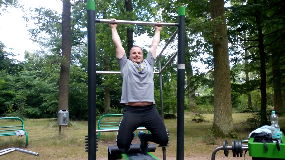 Schreib einen KommentarDas Wetter lud regelrecht dazu ein, sich sportlich zu betätigen. Milde 24 Grad und Sonne satt. Für mich hieß es ab zum Skaterpark nach Frankfurt. Schließlich wollten heute Poseidon und Ares bewältigt werden. Bei Poseidon stehen insgesamt satte 50 Pullups auf dem Plan. Kein Pappenstiel für einen wie mich, der Pullups nicht sonderlich mag. Pushups…
