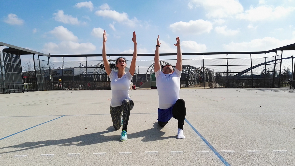 Für mich lief es eher etwas ruhiger, hatte ich einen Tag vorher meine Burpee Challenge geschafft und wollte erst einmal schauen, was überhaupt geht. Schultern und Arme waren immer noch platt und brauchten eigentlich einen oder zwei Tage Pause. Daher gleich mal Pushups zum warm machen. Auch krank, oder? ^^ 100% saubere Ausführung ist dabei sehr wichtig. Spürt man die Übung ordentlich in den Armen. Danach 10 „Flat Out Burpees“. Körperspannung halten und mit einem sauber abgeschlossenen Strecksprung, bei dem die Arme ganz nach oben gestreckt werden. Hammer Übung!